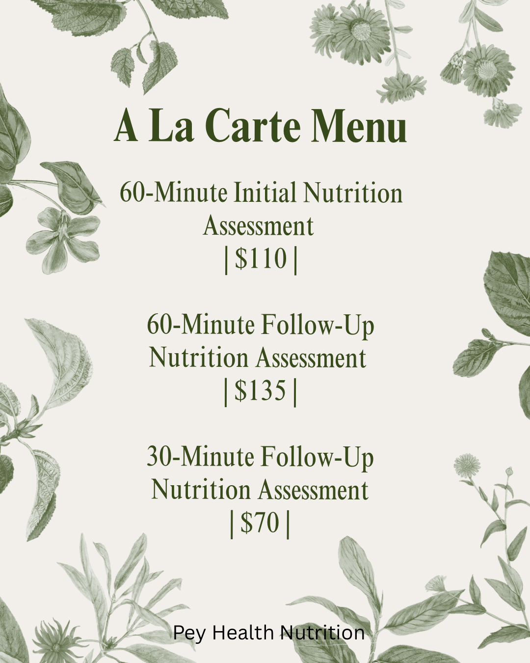 A La Carte Menu